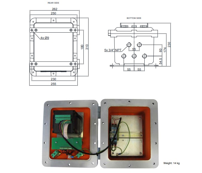 防爆箱,已通過(guò)ATEX II 2(1)GD認(rèn)證,配有耐熱透明鋼化玻璃窗和5個(gè)外部按鈕,其功能與W200鍵盤相同