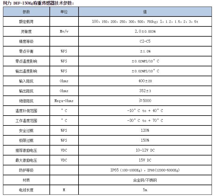 柯力 DEF-A-50kg稱重傳感器型號類別技術參數選型安裝等資料信息,如果有關