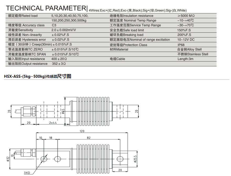 柯力 HSX-5kg稱重傳感器型號類別技術參數選型安裝等資料信息,如果有關