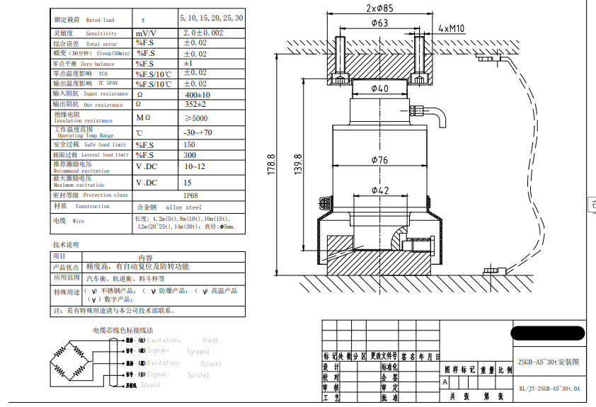 寧波柯力稱重傳感器ZSGB-ASS-5t產品技術參數及尺寸圖:qFm廣州南創電子科技有限公司