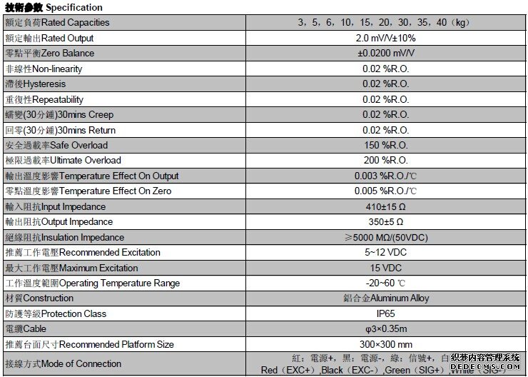 推薦工作電壓Recommended Excitation 5~12 VDC