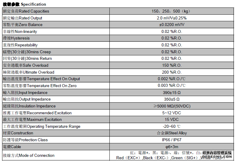 額定輸出; 2.0 mV/V±0.25%EkJ廣州南創電子科技有限公司