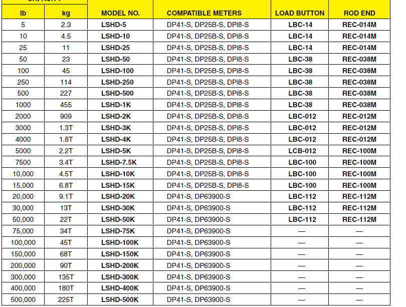 lb      kg     MODEL NO.     COMPATIBLE METERS     LOAD BUTTON      ROD ENDCAR廣州南創(chuàng)電子科技有限公司