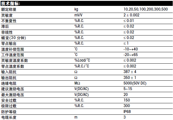 梅特勒托利多MTB系列稱重傳感器所有量程如下:hj0廣州南創電子科技有限公司