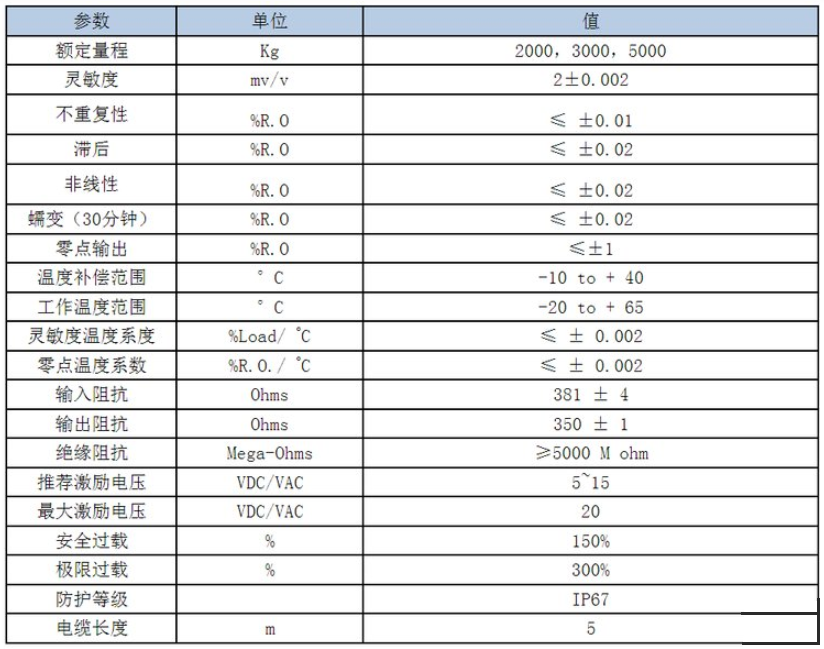 YDQ廣州南創電子科技有限公司(5)托利多TSB-3T傳感器適量程范圍:2T,3T,5T