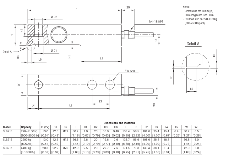 METTLER TOLEDO稱重傳感器SLB215-220kg技術參數圖: