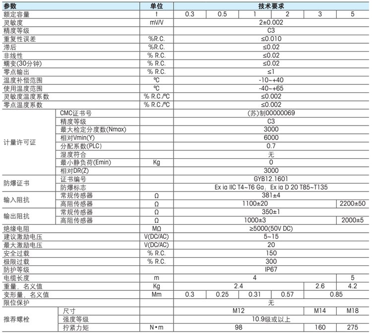 METTLER TOLEDO稱重傳感器SBT-1t技術參數:rSg廣州南創電子科技有限公司