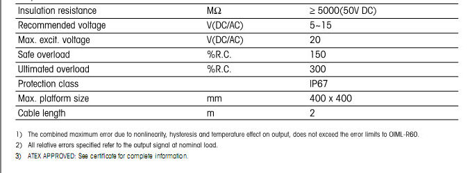 梅特勒托利多MT1041傳感器系列型號技術參數圖如下(Technology parameters):