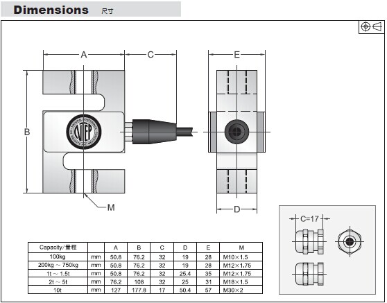 與NCH稱重傳感器SC3-750kg產品類似,其它可替代產品型號推薦: