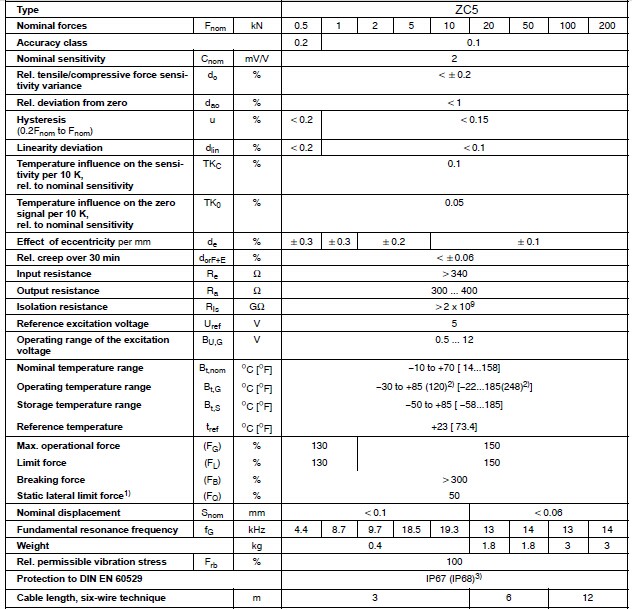 美國NCH稱重傳感器ZC5-200kN參數(shù):