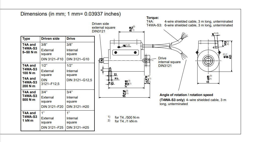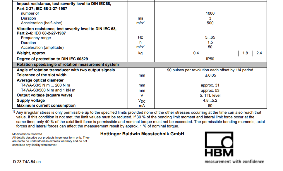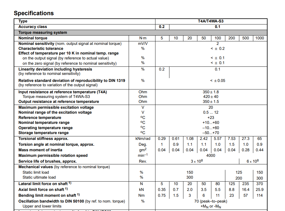 德國HBM T4A扭矩傳感器技術參數(shù):