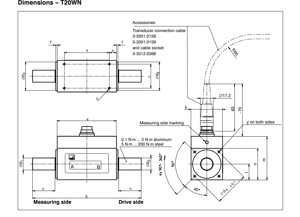 德國HBM T20WN扭矩傳感器技術(shù)參數(shù)圖:
