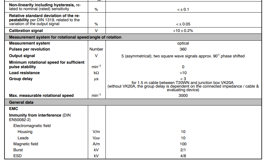 德國HBM T20WN扭矩傳感器技術(shù)參數(shù):