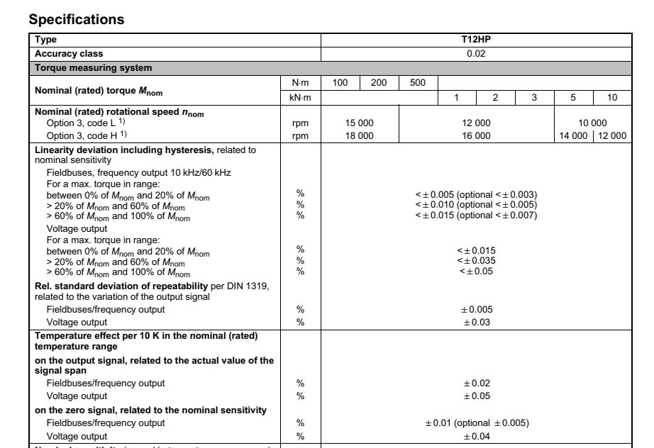 德國HBM T12扭矩傳感器技術參數: