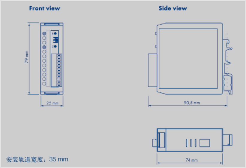 標準導軌固定安裝,符合 DIN EN 50022 標準hrE廣州南創電子科技有限公司