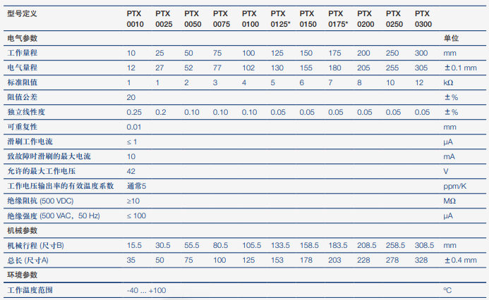 諾沃泰克PTX 0175 PTX 0150位移傳感器技術參數圖:vAi廣州南創電子科技有限公司