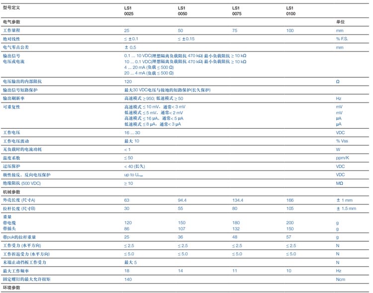 德國Novotechnik LS1系列位移傳感器主要特點:hri廣州南創電子科技有限公司