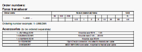 U9B/100N力傳感器額定靈敏度: 1mV/V