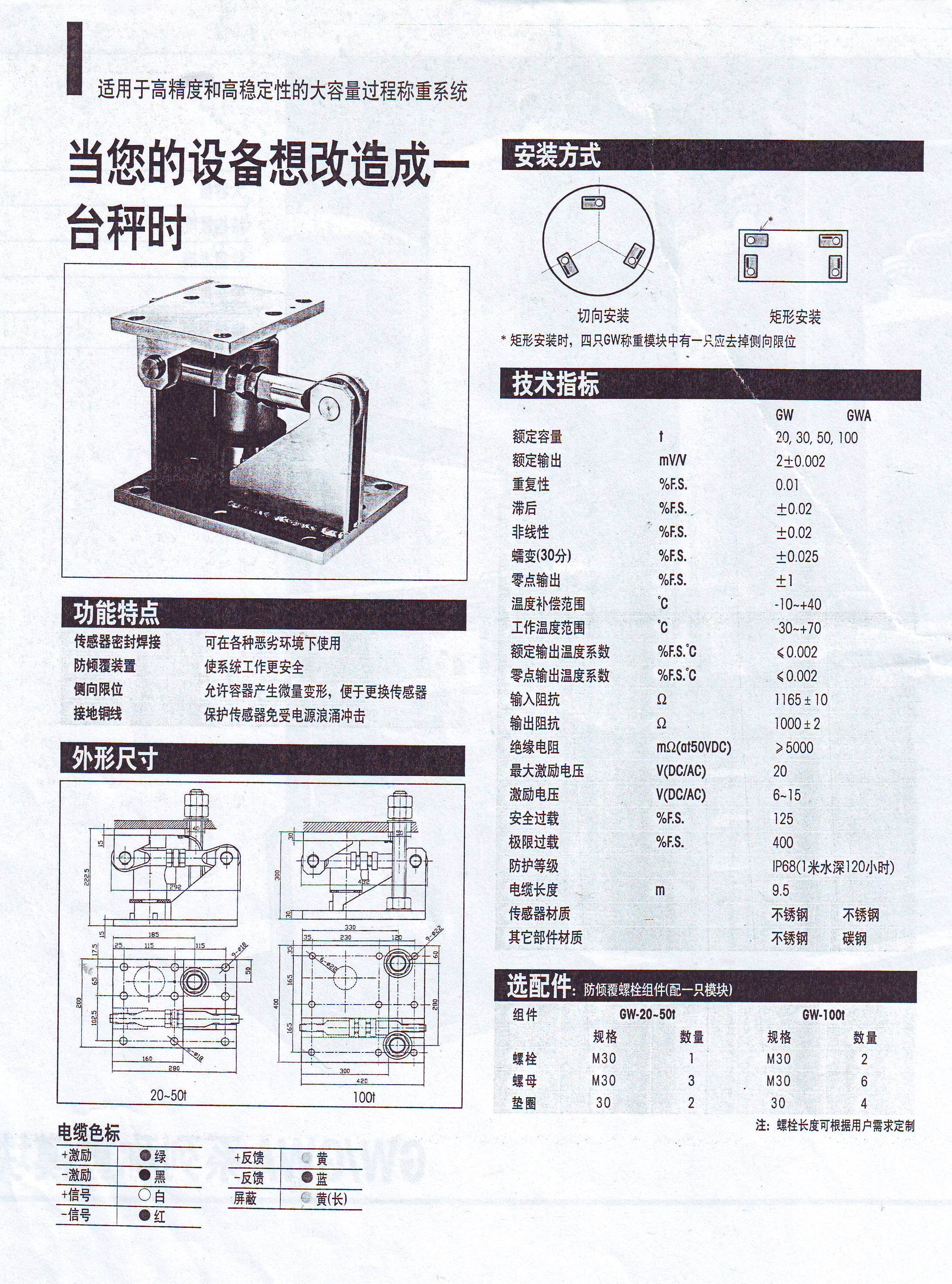 GWA-200 GWA稱重模塊,容量200t,,20M電纜