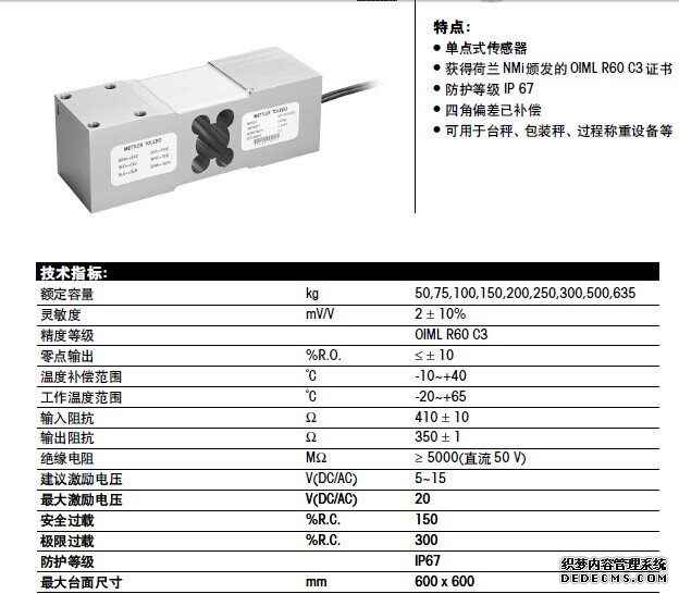Mettler Toledo MT1260單點式稱重傳感器其它相關(guān)產(chǎn)品信息: