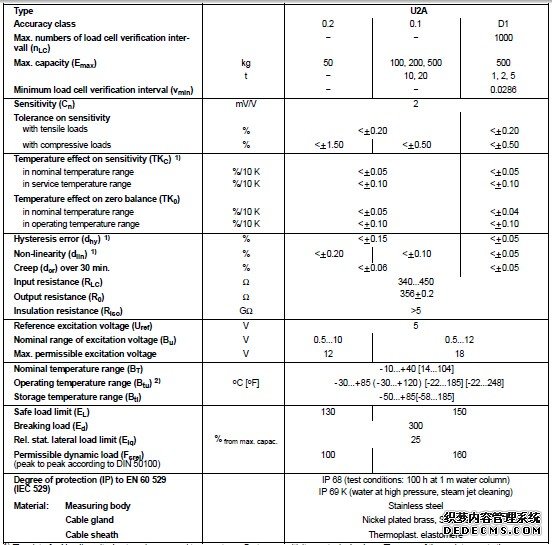 德國Hbm傳感器可查找了解U2A系列稱重傳感器具體技術參數及相關系列產品型號等信息。
