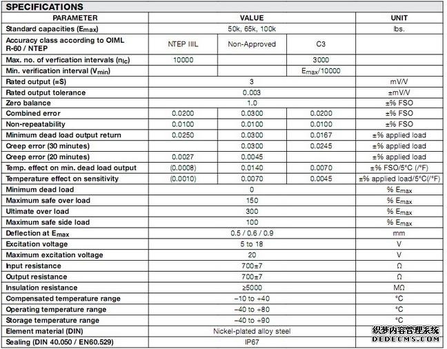 美國Vishay Revere稱重傳感器部份型號介紹: