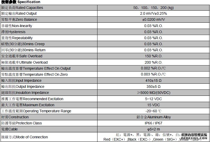 臺灣Mavin稱重傳感器NA6系列量程: