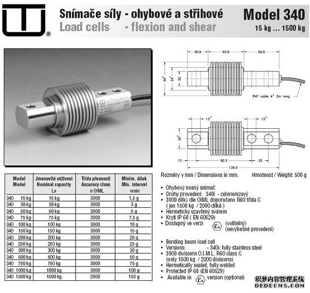 西班牙尤梯爾稱重傳感器MOD340-50kg技術(shù)參數(shù):zkg廣州南創(chuàng)電子科技有限公司精度等級:OIML 3000N。