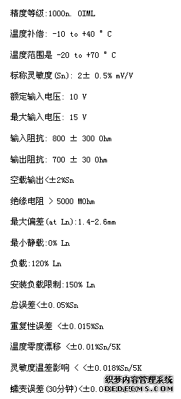 nyy廣州南創電子科技有限公司特點:nyy廣州南創電子科技有限公司量程范圍:15t-400t,自復位彈性體4000 分度O.I.M.L. R60 C級(*1000 分度O.I.M.L. R60 C級)