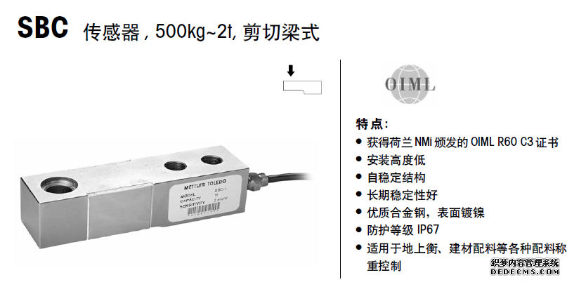 英文名稱:mettler toledo稱重傳感器SBC-2t