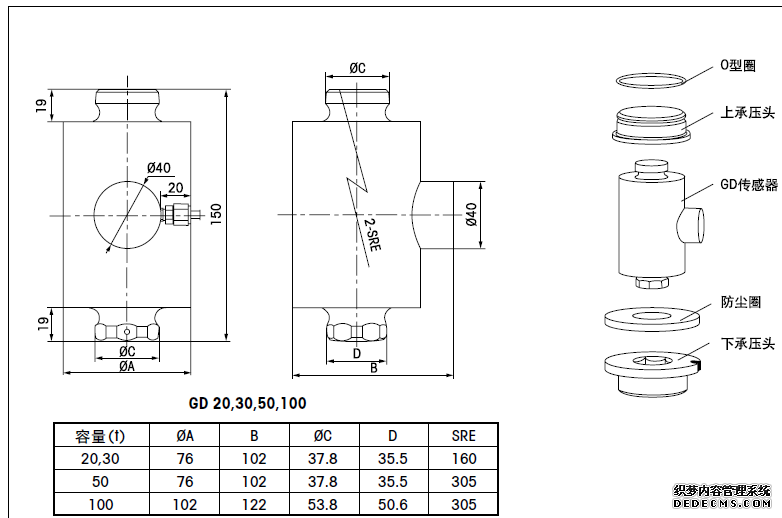 GD-50T 搖柱式稱重傳感器,容量50T,13M電纜