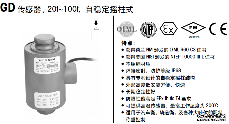 英文名稱:mettler toledo稱重傳感器GD-20t