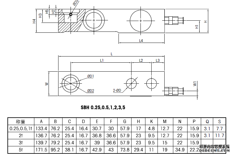 SBH-0.25 彎曲梁稱重傳感器,稱重容量0.25T,承載孔為盲孔,5M電纜