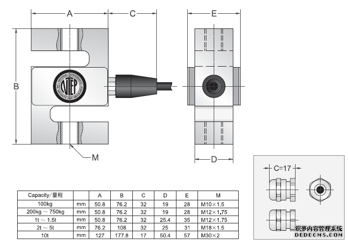 產品類型:S型拉壓力稱重傳感器