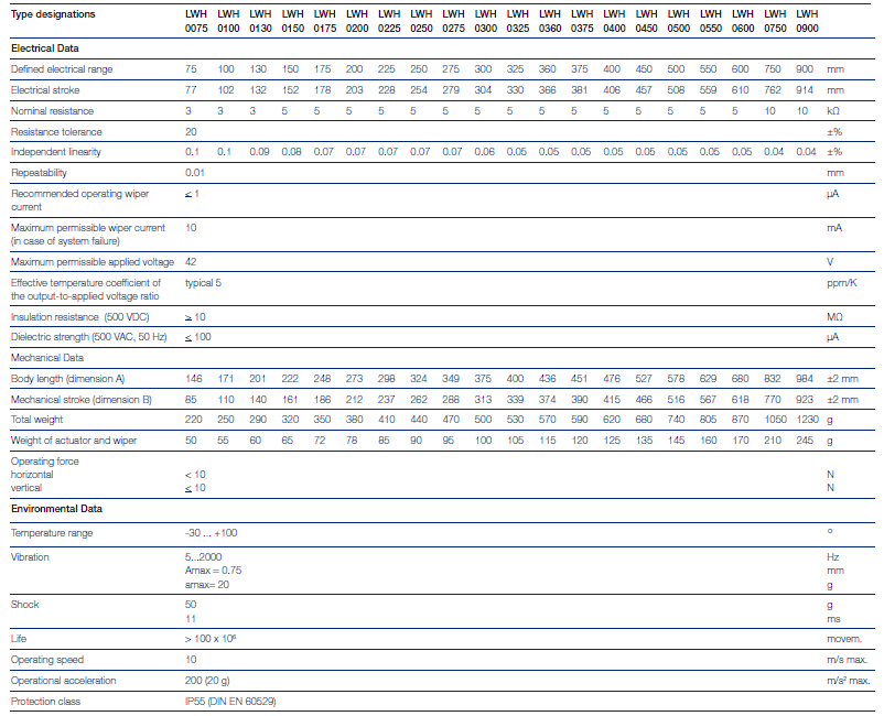 德國NOVO LWH-500位移傳感器所有量程如下:1U0廣州南創電子科技有限公司