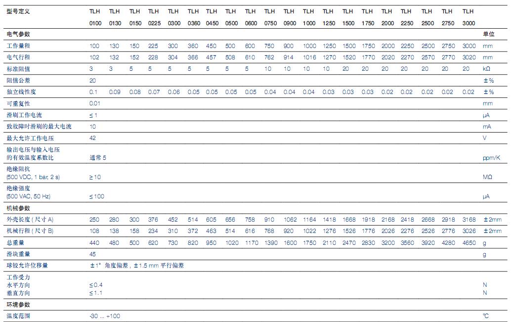 德國NOVO TLH-600位移傳感器產品所有量程如下:laH廣州南創電子科技有限公司