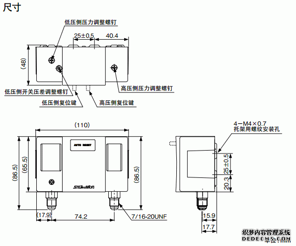日本鷺宮DYS型高低壓壓力控制器尺寸參考圖:QYH廣州南創電子科技有限公司