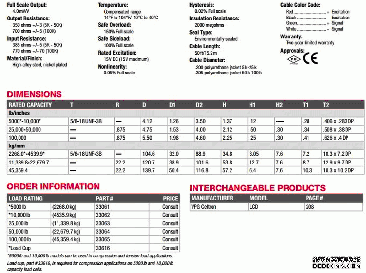 RICE LAKE RL90000稱重傳感器環保密封低調壓縮磁盤。5000和萬磅的容量的模型也可用于在張力負載應用。剪切網頁設計提供卓越的性能,低調的功能使它成為理想的應用是至關重要的高度。容量從5000到10萬磅(2268.0至45,359.4千克)。積分20'/ 6.1米長的電纜。Vqt廣州南創電子科技有限公司