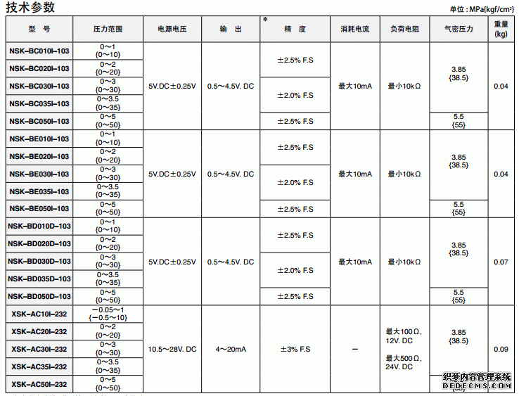 日本鷺宮XSK系列壓力傳感器產品技術參數(shù)圖:5ke廣州南創(chuàng)電子科技有限公司