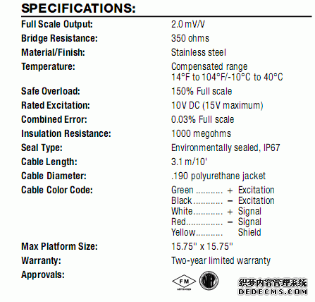 美國RICELAKE RL1380稱重傳感器參數圖:K7z廣州南創電子科技有限公司