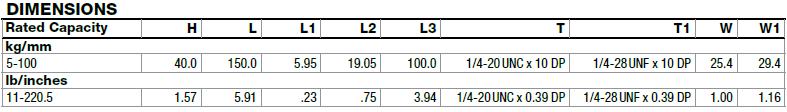 偏轉容量:3-100公斤≤0.4 mm/.015“總誤差:0.02%滿量程