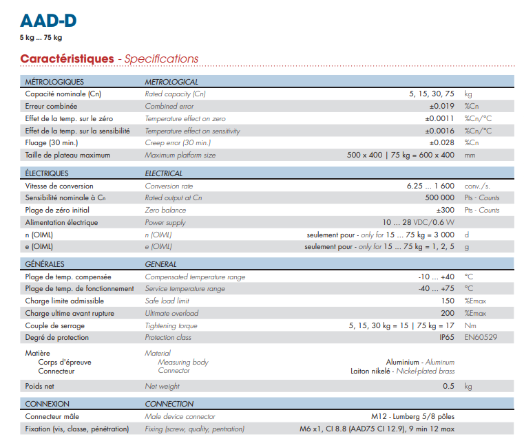 法國世感Scaime稱重傳感器AAD-D-5KG產品參數圖:n9G廣州南創電子科技有限公司