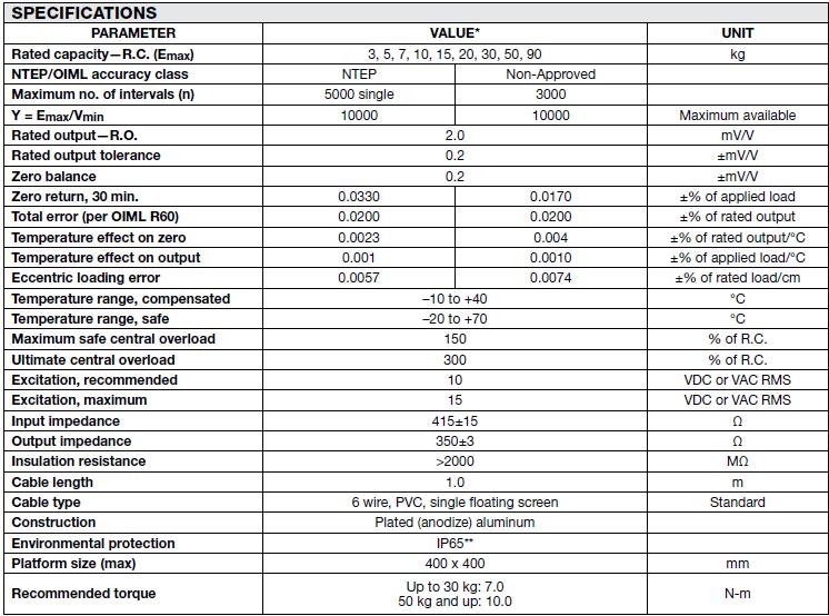 最大安全負載< ± 0.025 %FS < ± 0,022 %FS < ± 0.018 % FS