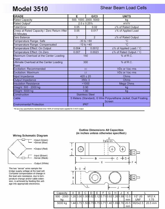 美國(guó)TEDEA-HUNTLEIGH 3510-2000kg稱重傳感器技術(shù)參數(shù)圖: