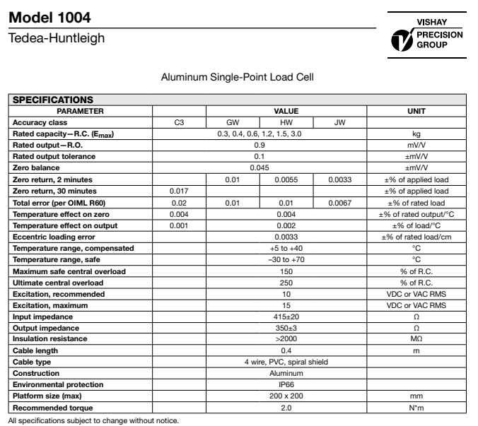 特迪亞tedea稱重傳感器1004-1.5KGHW技術參數圖:WMx廣州南創電子科技有限公司