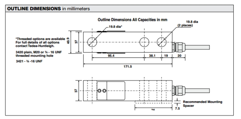 特迪亞稱重傳感器3420-2000LB產品尺寸:VxX廣州南創電子科技有限公司