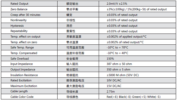 美國傳力Transcell CR系列稱重傳感器所有量程如下:Prj廣州南創(chuàng)電子科技有限公司