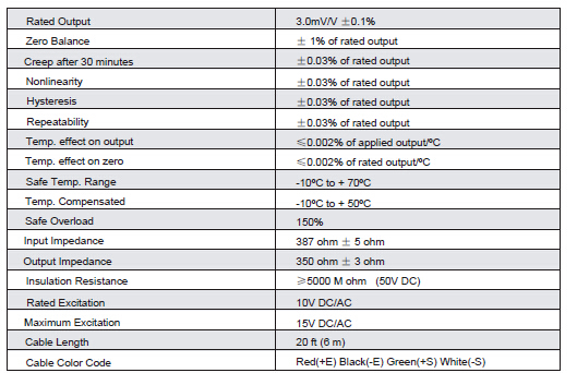 美國Transcell稱重傳感器SBS-250kg產品參數:9UL廣州南創電子科技有限公司