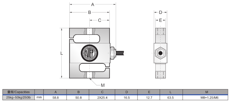 美國傳力BSA-25MT2稱重傳感器產品技術參數:
