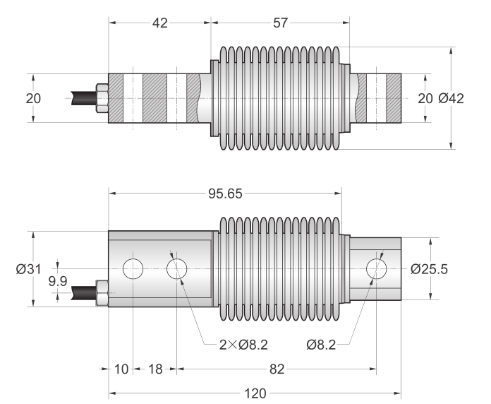KCI廣州南創(chuàng)電子科技有限公司美國傳力Transcell稱重傳感器BSH-250kgSS尺寸圖:KCI廣州南創(chuàng)電子科技有限公司